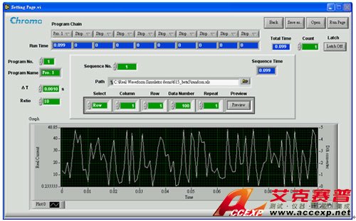 致茂提供最新動(dòng)態(tài)電流波形充放電模擬軟件,它可以讀取記錄電池實(shí)際充放電波形數(shù)據(jù)的Excel檔案,并透過(guò)數(shù)字/模擬轉(zhuǎn)換器控制電子負(fù)載/直流電源的拉載/輸出相同的電流。這讓使用者在實(shí)驗(yàn)室里就可以很容易來(lái)仿真電池不規(guī)則充放電的應(yīng)用,做重復(fù)性的測(cè)試,不需要每次實(shí)際進(jìn)行路測(cè)。方便車廠評(píng)估電池模塊于真實(shí)環(huán)境下使用續(xù)航力,及模塊廠商評(píng)估電池芯材料特性分析。