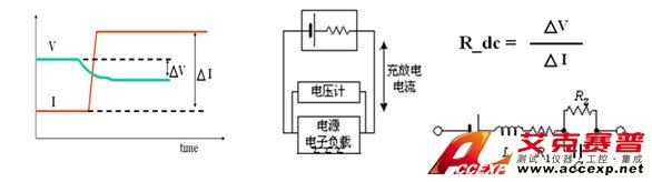 電動(dòng)車所需動(dòng)力電池需要并聯(lián)電池芯來(lái)提供大電流使用,此電池芯阻抗一致性為重要之參數(shù),若阻抗不一致,會(huì)影響電池使用壽命。致茂電子提供最新直流阻抗量測(cè)方案,方法為設(shè)定放電電流變化(ΔI)及量測(cè)電壓變化量(ΔV),然后通過(guò)ΔV/ΔI 計(jì)算電池內(nèi)阻,如下圖示: