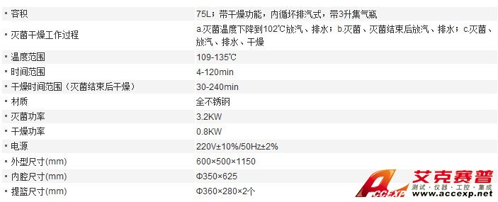 博迅YXQ-LS-75G壓力蒸汽滅菌器技術規(guī)格: