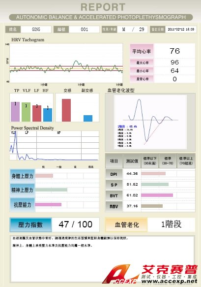 Max Pulse精神壓力分析儀根據(jù)The Task Force組織建議的理論標(biāo)準(zhǔn)為基礎(chǔ),全世界首次具備了符合東方人生理范圍的參考常模,是由韓國MEDICORE公司研發(fā)生產(chǎn)的、全世界首次定量化分析人體精神壓力、軀體壓力的高科技產(chǎn)品。 HRV檢測是基于正常節(jié)律(Sinus Rhythm)為分析對象,因此采集信號的準(zhǔn)確性尤為重要。HRV是世界范圍內(nèi)廣泛研究的理論,是一種值得信賴的檢測工具。