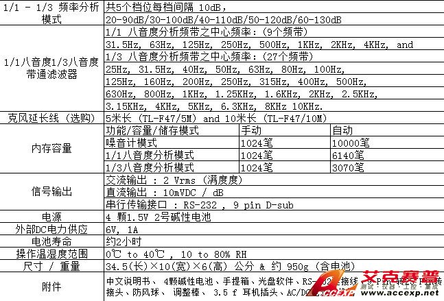 | 準(zhǔn)確度 | ± 1.5dB (在參考音壓位準(zhǔn) 94dB @ 1KHz) | ||