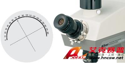10分測(cè)角目鏡(適用于除U?LU?LMU以外的全部機(jī)種)視場(chǎng)中會(huì)出現(xiàn)十字線和角度刻度,當(dāng)轉(zhuǎn)動(dòng)目鏡底部的滾花環(huán)時(shí),十字線和游標(biāo)均會(huì)在180°范圍內(nèi)旋轉(zhuǎn)。