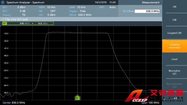 射頻工程通常需要測試無源或有源射頻電路;這些電路本身不會產(chǎn)生射頻信號,例如放大器、濾波器或射頻電纜。僅使用頻譜分析儀不足以進行此類測試,還需要借助信號發(fā)生器。R&S FPC1500 具備跟蹤源功能,可執(zhí)行傳輸測量,例如射頻濾波器以及一般頻率響應(yīng)測量。