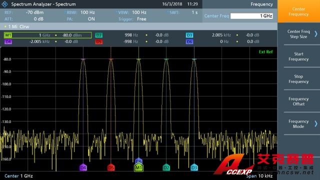 R&S FPC1500 可以在獨立模式下使用集成式信號源。由于具備這種獨特功能,R&S FPC1500 可用作連續(xù)波 (CW) 信號發(fā)生器。信號源可用作本振信號以進行混頻器測量,或用作輸入信號以進行放大器增益測量。
