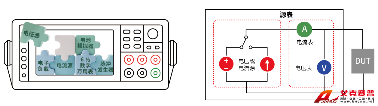 ?集六種設(shè)備功能于一體:電壓源、電流源、6 ?數(shù)字萬用表(DCV,DCI, ohms)、電池模擬器、電子負(fù)載及脈沖發(fā)生器