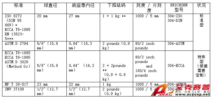 erichsen304可調(diào)沖擊試驗(yàn)儀測試標(biāo)準(zhǔn):