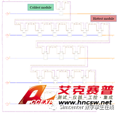 動(dòng)力電池組熱管理系統(tǒng)需要各個(gè)單電池工作在合理溫度范圍內(nèi)的同時(shí)盡量維持包內(nèi)各個(gè)電池及電池模塊間的溫度均勻性。Simcenter Amesim軟件能夠針對(duì)風(fēng)冷和水冷等不同冷卻方案進(jìn)行仿真研究,為研究和開發(fā)電池包熱管理系統(tǒng)提供了設(shè)計(jì)指導(dǎo)和優(yōu)化。