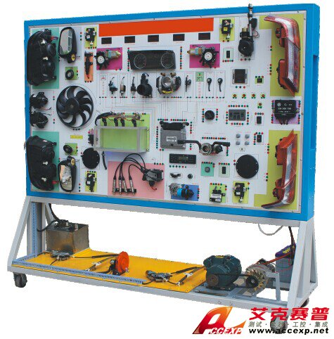 在整車(chē)電器基礎(chǔ)上,配備各相關(guān)輔助控制裝置,可如原車(chē)一樣實(shí)際演示起動(dòng)、充電、燈光、儀表、雨刮、中控門(mén)鎖、車(chē)身防盜、電動(dòng)窗、音響系統(tǒng)等全套整車(chē)電器設(shè)備的工作原理和過(guò)程;