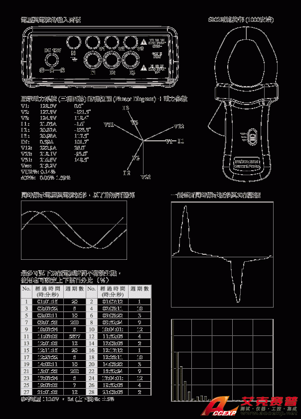 | AC(交流)電流的諧波分析(1~99階)3007超大電流軟性鉤部 | |||||