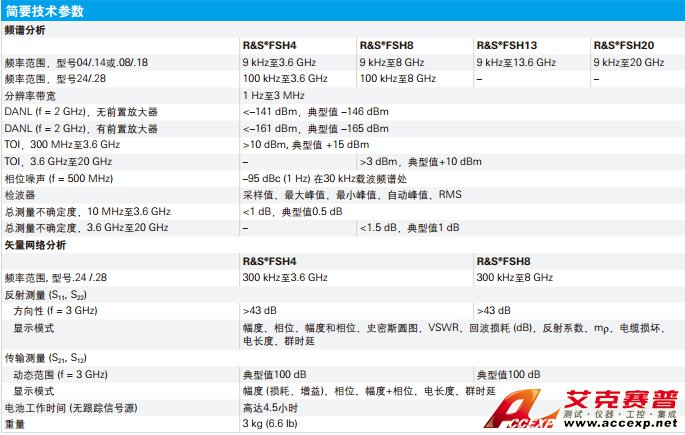 羅德與施瓦茨 R&S FSH8 手持式頻譜分析儀是為執(zhí)行現(xiàn)場(chǎng)測(cè)量任務(wù)設(shè)計(jì)的耐久型、手持式頻譜分析儀,羅德與施瓦茨 R&S FSH8 手持式頻譜分析儀重量輕,羅德與施瓦茨 R&S FSH8 手持式頻譜分析儀操作簡(jiǎn)單合理,羅德與施瓦茨 R&S FSH8 手持式頻譜分析儀測(cè)量功能豐富,羅德與施瓦茨 R&S FSH8 手持式頻譜分析儀是需要高效戶外測(cè)量工具的任何人都離不開的工具。以下是艾克賽普為您介紹羅德與施瓦茨 R&S FSH8 手持式頻譜分析儀的特性,如有相關(guān)問題,請(qǐng)聯(lián)系長(zhǎng)沙艾克賽普儀器儀表公司zzhqqb.com,聯(lián)系電話:0731-84284278 84284378。