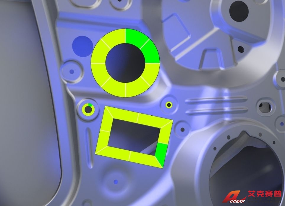 灰度值邊界測量功能,搭配可拆卸式補(bǔ)光模塊,光照更均勻,支持鈑金件的圓、槽及機(jī)加孔精準(zhǔn)測量,保證對應(yīng)孔的位置度和孔徑的重復(fù)性精度。